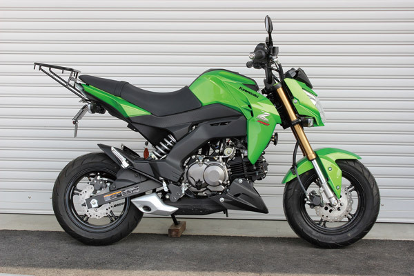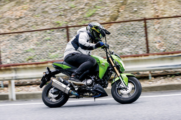 OVER製マフラーと言えば現在の4ミニシーン、モンキーで高い装着率を誇る。今回紹介してるTT -Formula RS フルチタン Z125 PRO(価格未定)は絶妙な長さ、レイアウトで作り上げられ、実際に体感出来る性能を発揮してくれた。同時装着されたバックステップにも注目して欲しい。Zを乗った時に感じたステップの違和感が解消され、「さすがOVER」と思わせるポジション、仕上りとなっていた。今回は撮影が間に合わなかったが新型GROM用マフラーも開発中。次号で紹介予定なのでお楽しみに!!