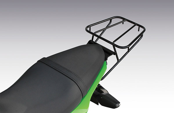 ちょっとしたツーリングやお買い物時に大活躍するリアキャリア(¥13000/税抜)。最大積載量は5㎏までとなっている