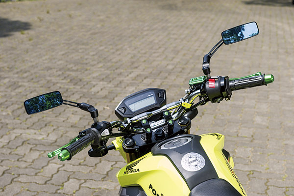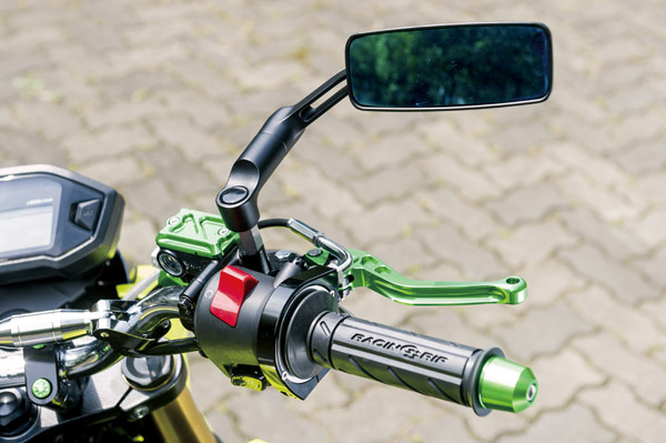 ハンドル周りは同社が展開するパーツブランドのPERFORMER(パフォーマー)からリリースされる、アルミ削りだしパーツで艶やかに彩どられた