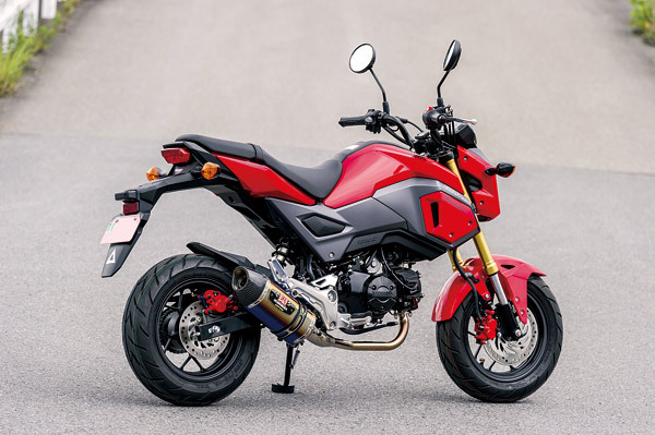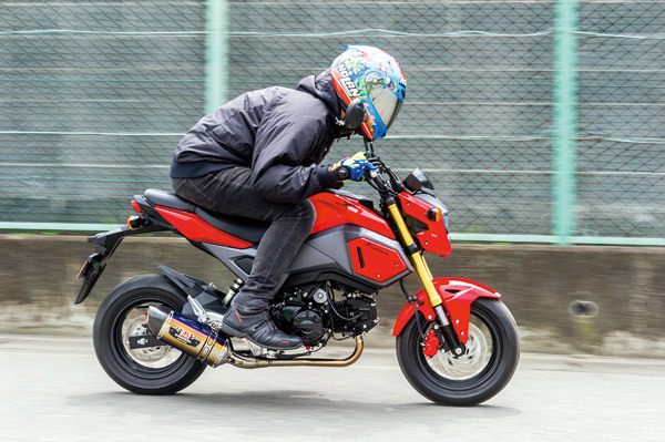 ここで紹介するのはそんなヨシムラがラインナップしているマフラーの中でも高い人気を誇るマフラーの1つである、R -77Sサイクロンマフラーを装着したZ125PROとNEW GROM。ミニバイク用といえどこれまでのレース、マフラー開発で培ったノウハウがフィードバックされており、その性能は確かなもの。今回試乗したのはGROMのみだったが、その性能は全域でノーマルの1つ上をいくパワーが体感することが出来1本となっていた。