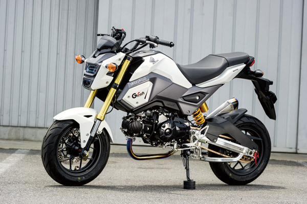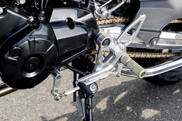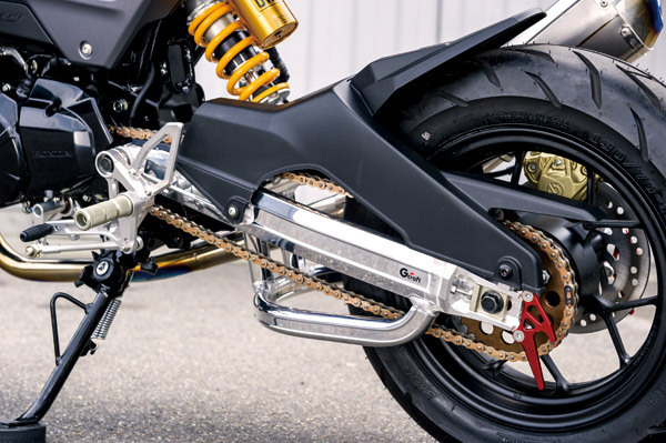 GROM用バックステップ(¥38,000/税抜)も、さすがGクラフトといえる造形美。シフトガイドと併用すればシフトタッチは抜群!