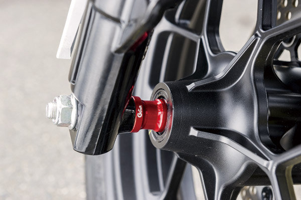 フォークとホイールの間に使用するアクスルカラー(¥ 3 , 8 0 0 / 税抜)もリリース。カラーはレッド、ブラック、シルバーを用意