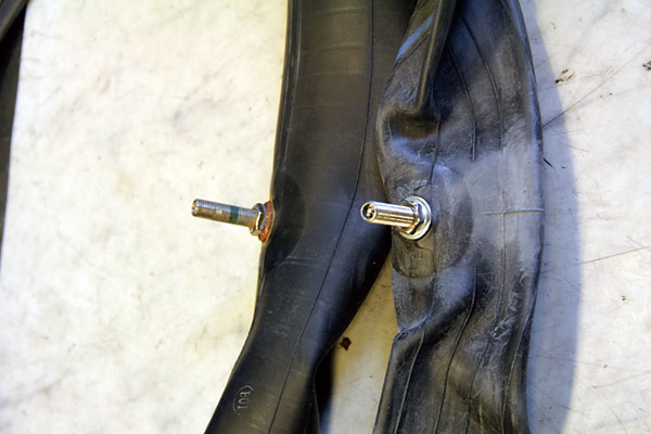 チューブやバルブまわりの錆が写真のようにひどい場合は要交換。リムバンドも交換したほうが無難。組付け時のトルク管理もバッチリ