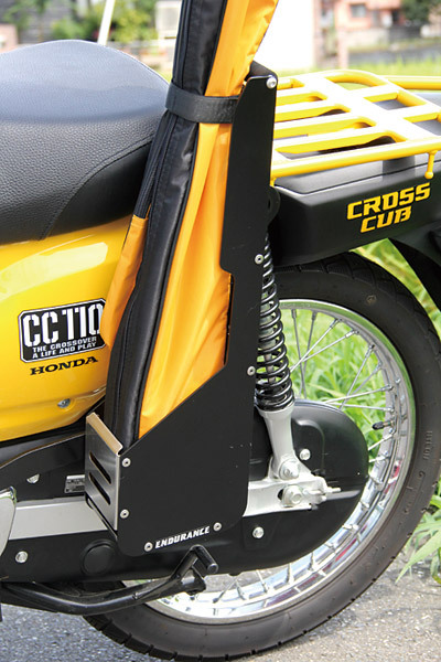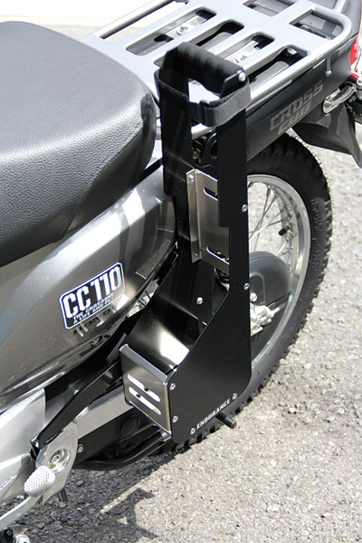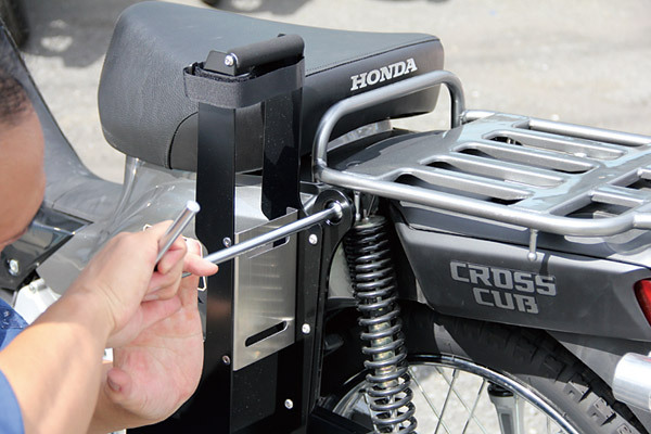 アウトドア仕様になりつつあるクロスカブ。今回は釣竿やゴルフクラブなどの長尺物が積載できるロッドケースを装備することになった。これで遊びのフィールドはさらに広がる。