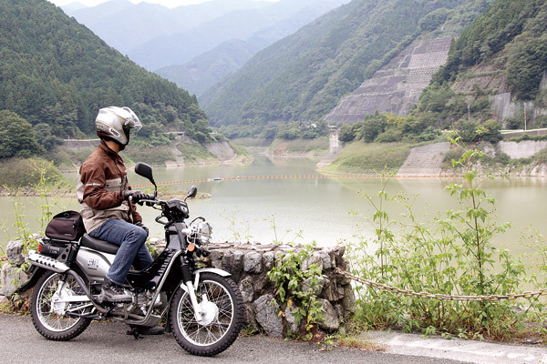 混雑する市街地を抜けて、目前に奥武蔵の山々が迫ってくると、ツーリング気分はがぜん盛り上がる。適度にカーブが連続する道をクロスカブは快調に走る。タイヤがブロックパターンということもあり、乗り心地は以前に比べてソフトな印象。だからといってカーブで踏ん張りが利かないなんていうこともない。スピードはたかが知れてるから、グリップ不足を感じることももちろんない。