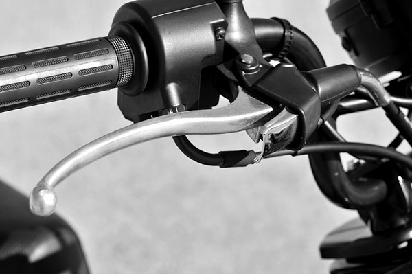フロントブレーキレバーのマウントには押さえが装備してあり、操作することでレバーを固定し、パーキングブレーキとなる