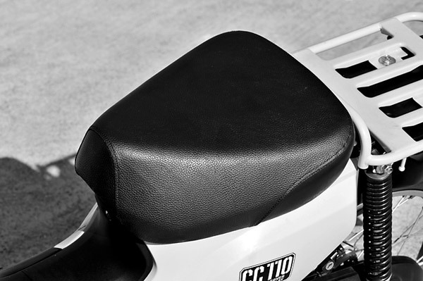 セル一発で始動するエンジンは、すぐにアイドリングが安定する。もしバッテリー上がりを起こしたとしても、キック始動できるのもうれしい。そしてスタートすると、これがまた元気。車の流れをリードするのが容易で、4速に入れる頃には50㎞/hを越えている。スーパーカブよりさらに低中速型のギア比となっているのだ。当然、登坂能力も高い。