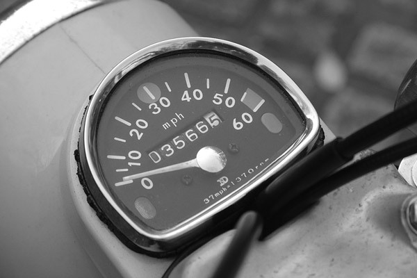 装備されるメーターは、マイル表示のスピードメーターだ。60 マイルまで目盛られているので、100km/h 弱ということになる