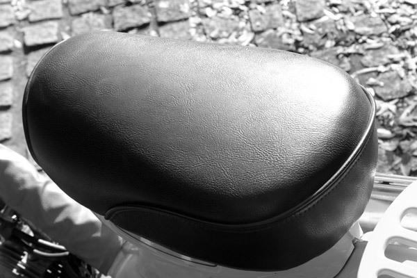肉厚のソロシートは、現行カブと比較するとやや細長い形状だ。鞍型よりもスポーティな雰囲気が出ていて、なかなか魅力的
