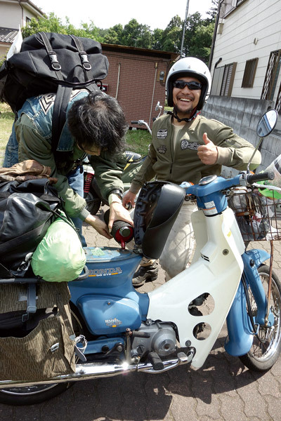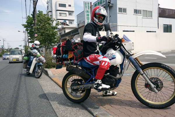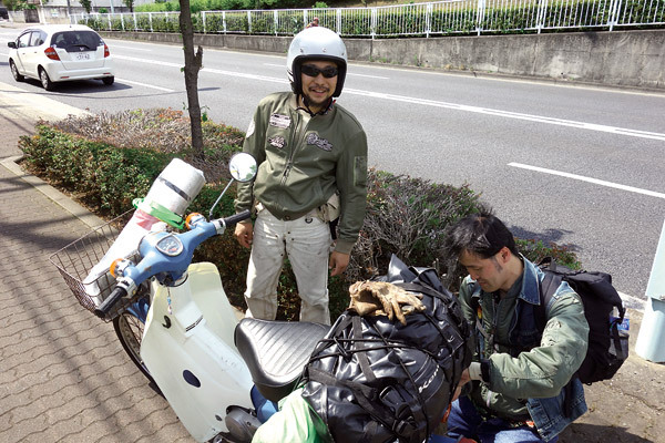 …とは言え、旅慣れた大型バイクならいざ知らず、原付に荷物を積むとなるとなかなか大変だったりも…。キャリアには更に積載力をアップさせる板などを追加装備しなければ、テントや食事の道具などを積んでいくのは難しいですから。そんな中で、カブの積載力はやはり凄かった(荷物積み過ぎると、重くて全然ブレーキ効かなくなりますけど…)。モンキーなどのキャリアが小さくて積載能力が少ない車両は、荷物がたくさん積めるカブなどの車両と一緒に行くのが吉ですね。