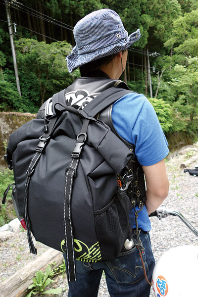 125㏄とは言え、やはりフルサイズのバイクは積載量が高い。呉 一慶の装備の数々は次の見開きページで大紹介です!