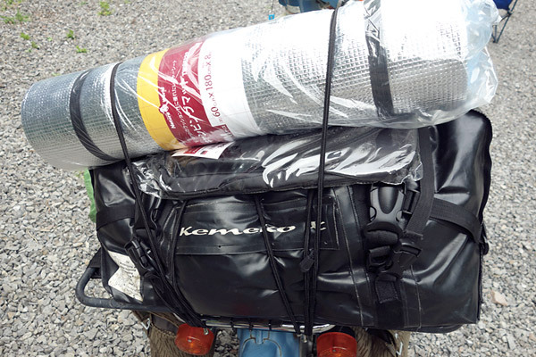 ツーリング時には荷物のサイズによって大きさを変えられるKEMEKO製の防水バッグを愛用