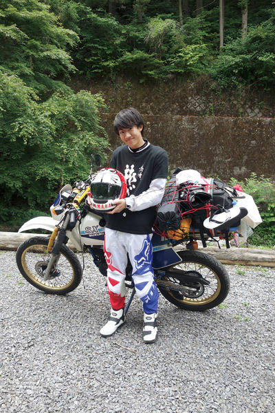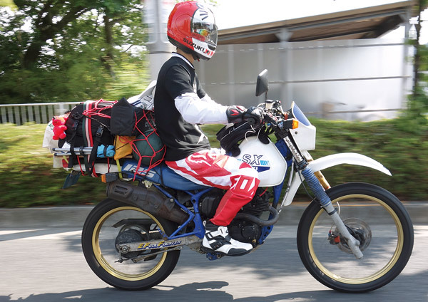 キャンプは小・中学生の時に青梅などで数回経験ありのハタチ。スズキと自家塗装の赤いドラヘルを愛しており、このSXで自走で都内~大洗ツーリングも軽くこなす調理人。ツーリングネットにタイラップでなんでも括りつける派
