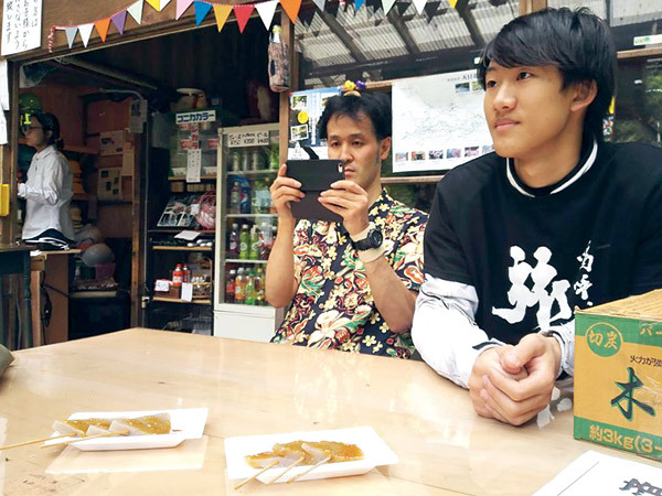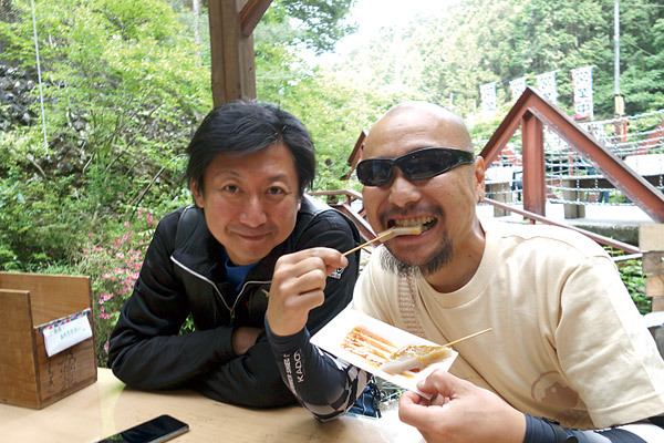 秘境を抜けると突如事務所が現れました。ここでひと休みしてキャンプ場も申し込む。食事に使う木炭も購入。田楽も美味し!