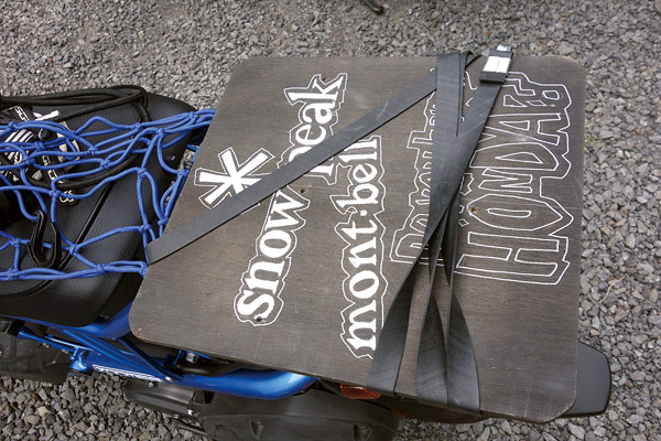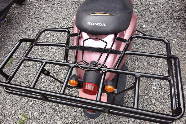 なんとこの日のためにこのズーマーを購入して、自作の木製キャリアまで装着。スクーター系はメットインじゃない方が、荷物が沢山積めるという良いお手本となった1台に仕上がっています
