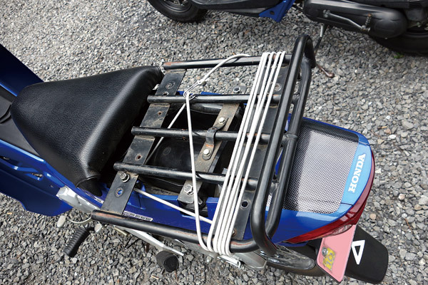 本来はダブルシートなのですが、ノーマルシートを切ってシングル化し、あまりスペースにキャリアを強引に装着。このアバウトな感じが東南アジアしていて、ある意味ではこれが正統派と言えます