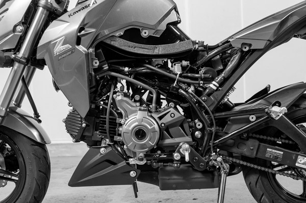 カワサキがKSR以来久しぶりの4ミニとなるZ125 PROを発売しました。排気量や車格、価格など多くの点でGROMに近いものがあり、両車はライバルとも言える関係性。そんなZ125PROの外装を外しスッポンポンにしてみました!