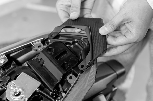 Zのアイデンティティとも言えるテールランプがテールカウルをちょっぴり覆っているので、少しカウルをひろげて…